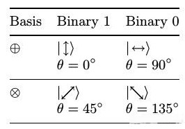 发送端(光子偏振态) | 接收端(测量基 0°/90°) | 接收端(测量基 45°/135°) |